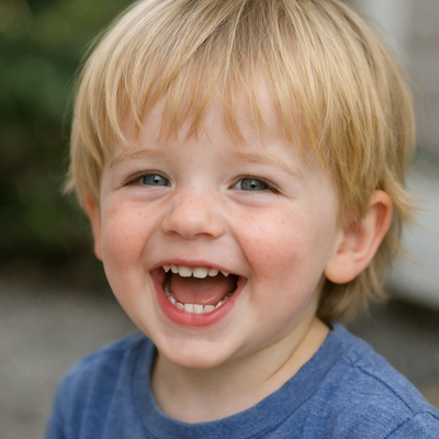 Il sole del mattino scalda le guance di Francesco mentre il grande cancello di legno si apre con un lungo cigolìo. L'aria profuma di fieno e di terra bagnata. Francesco spalanca gli occhi: davanti a lui si stende un prato verde smeraldo, e in lontananza un trattore rosso fiammante brilla sotto la luce dorata. "Muuuu!" Un suono profondo e gentile arriva da dietro la staccionata. Francesco si avvicina piano piano, con il cuore che batte forte. Una grande mucca bianca e nera lo guarda con i suoi occhi dolci e scuri. Francesco allunga la manina e sfiora il muso morbido e caldo. Ride, un riso pieno di meraviglia. "Coccodè! Coccodè!" Adesso è una gallina rossa a correre tra i suoi piedini, seguita da una fila di pulcini gialli come piccoli batuffoli di sole. Francesco batte le mani dalla gioia e prova a seguirli, ma i pulcini sono velocissimi! Poi, da dietro il fienile, arriva un suono nuovo: uno scalpitio ritmico e potente. Francesco si ferma, trattiene il respiro e guarda verso l'angolo...