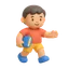 Bram zit midden op het zachte kleed in de woonkamer. Zijn handjes voelen de kriebelige wol onder zijn vingers. Wat is het daar, aan de andere kant van de kamer? Een glimmende rode bal! Bram wipt op en neer van opwinding. Hij wil erheen! Zijn knietjes gaan op de grond en — kruip, kruip, kruip — daar gaat hij. Het kleed voelt warm en zacht. De houten vloer voelt glad en koel. Brams ogen worden groot van al die nieuwe dingen onder zijn handjes. Bij de bank stopt hij even. Zijn vingertjes grijpen de rand van de zitting. Bram trekt en trekt, en opeens — hoepla! — staat hij op zijn beentjes. De hele kamer ziet er anders uit van hierboven! Zo hoog! Brams hart bonkt van trots. De rode bal ligt nog een paar stapjes verderop. Bram kijkt ernaar. Zijn ene voetje gaat omhoog, bibberend in de lucht. Hij voelt de kriebels in zijn buik. Dan zet hij het neer op de grond. Eén stapje! Mama's ogen glinsteren. Bram lacht zijn allerbreedste lach en dan tilt hij zijn andere voetje op...
