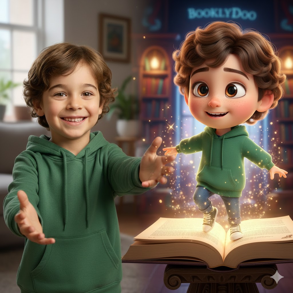 Met Booklydoo maak je een kinderboek met foto van jouw kind. Upload een duidelijke foto en onze geavanceerde AI-technologie verwerkt het gezicht van je kind in prachtige, unieke illustraties. Het resultaat? Een kinderboek waarin je kind zichzelf herkent op elke pagina. Geen generieke tekeningen, maar illustraties die echt op jouw kind lijken.